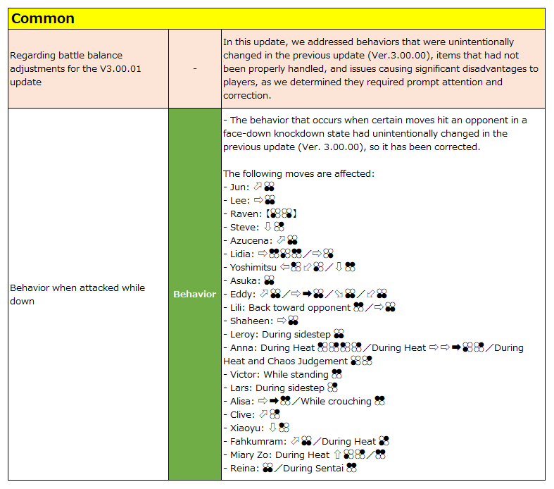 • *This list is written from the perspective of when you hit the enemy with the move in question (or make them block)